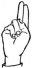 На ћирилици написано ЊЕГОСЛАВ СУДИМАЦ састоји се из 15 слова [?]. Исписано ћириличном једноручном азбуком за глувонеме: